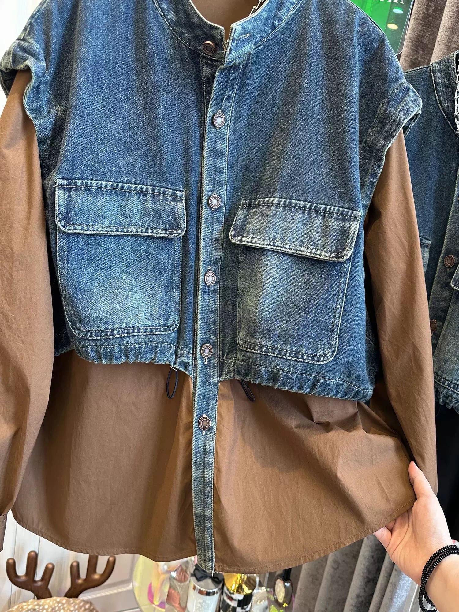 ビッグシルエット デニムベスト着てる風